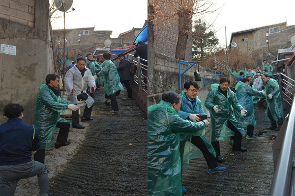 더불어 함께하는 사회를 위해 노동조합 집행간부들은 2016년 12월 21일(수) 오전 10시 강북구 수유동, 우이동, 번동, 인수동 등에서 (사) 지금 함께 및 지역주민들과 함께 ‘사랑의 연탄 나눔 봉사활동’을 했다.
