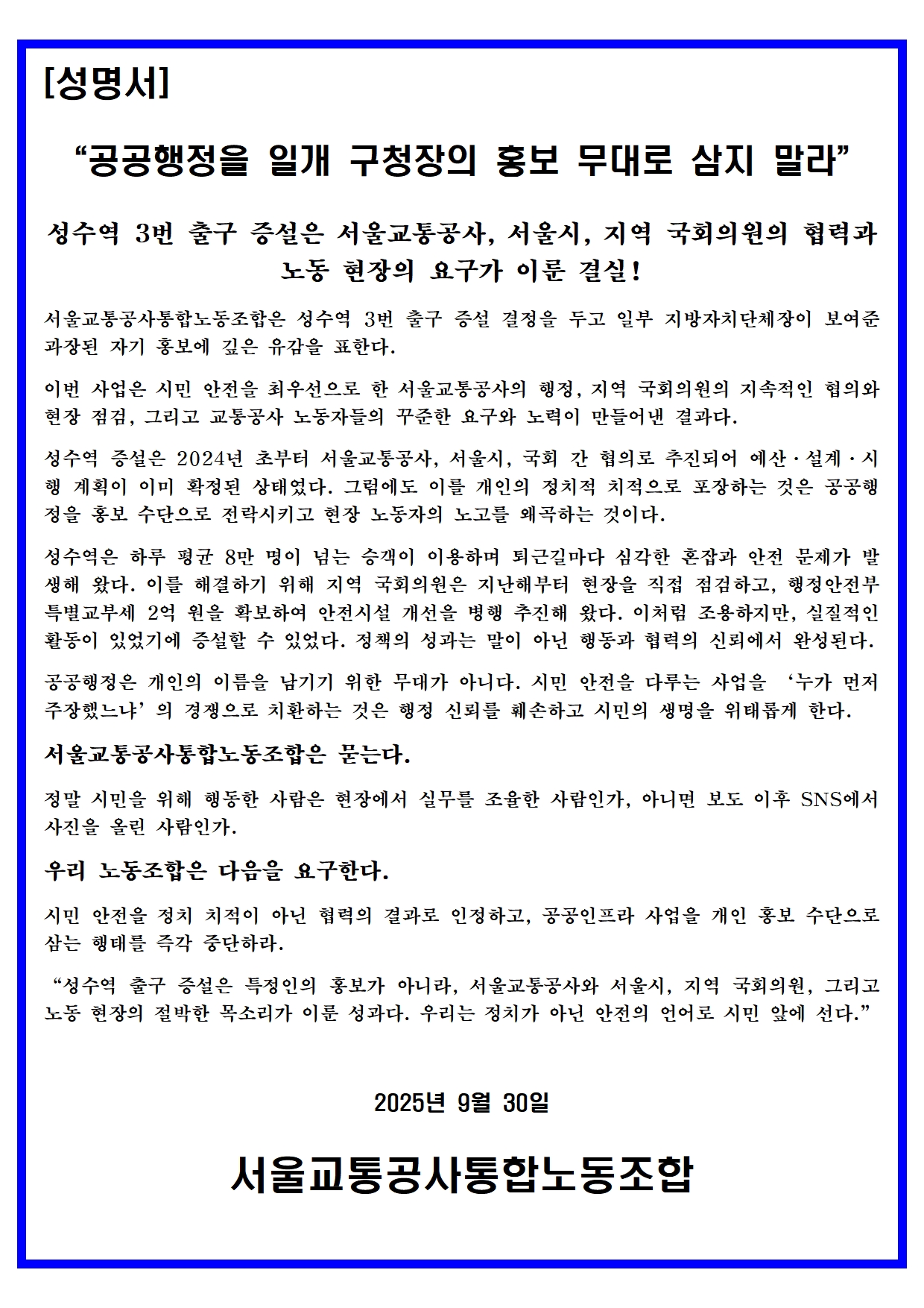 2025.09.30. 성명서_성수역 3번 출구.hwpx