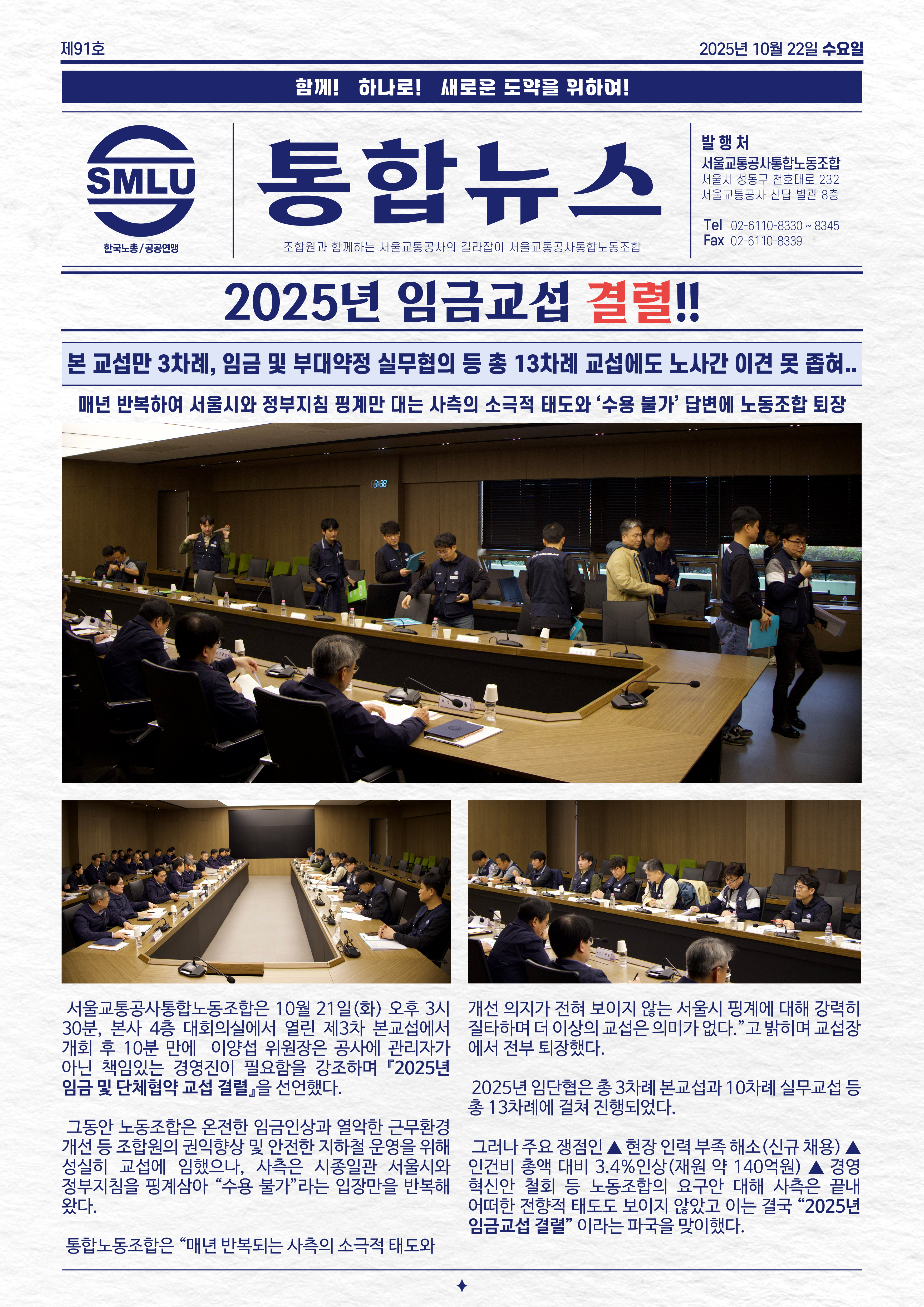 [통합뉴스 제91호] 2025년 임금교섭 결렬!
