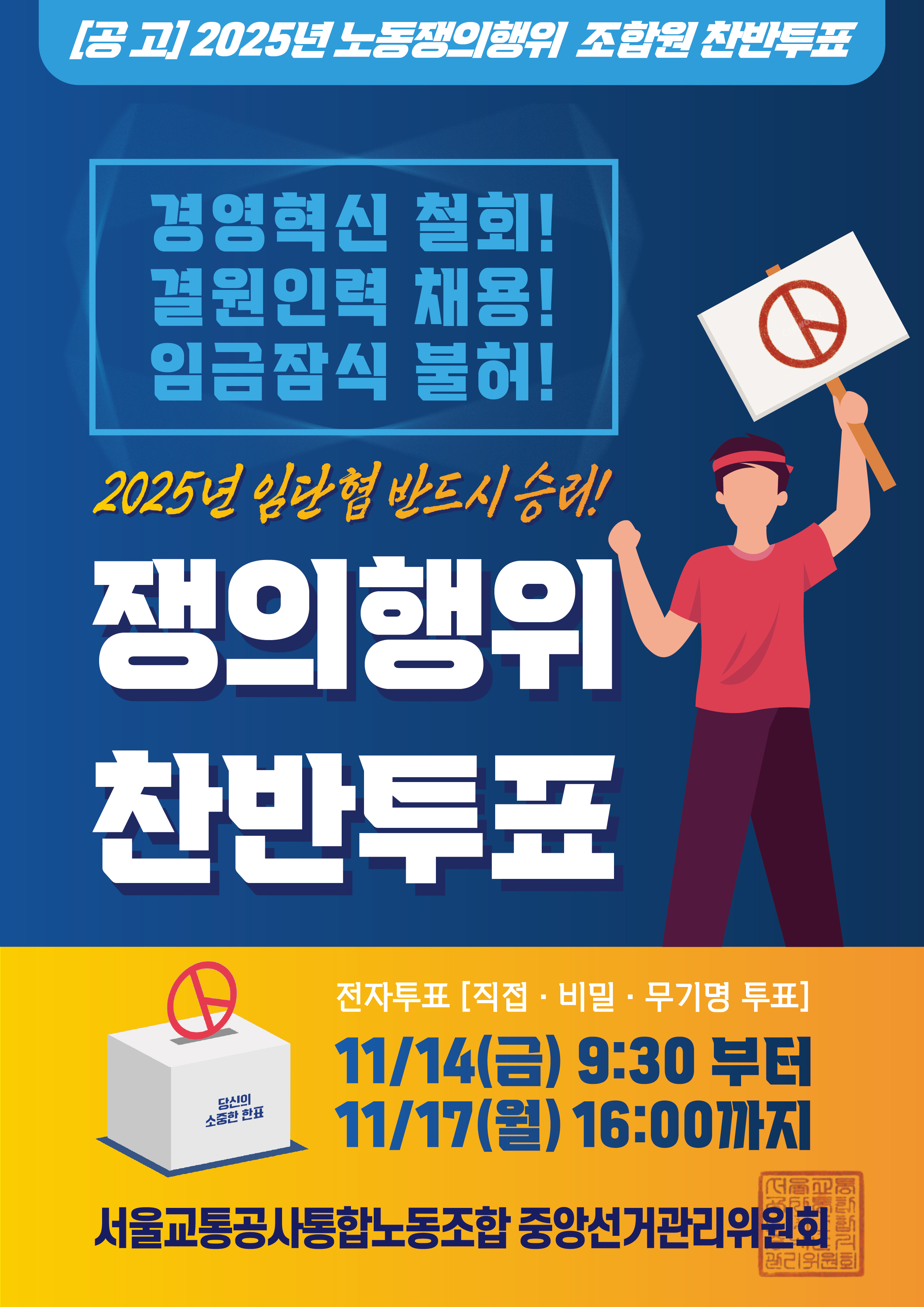 [공 고] 2025년 노동쟁의행위 조합원 찬반투표