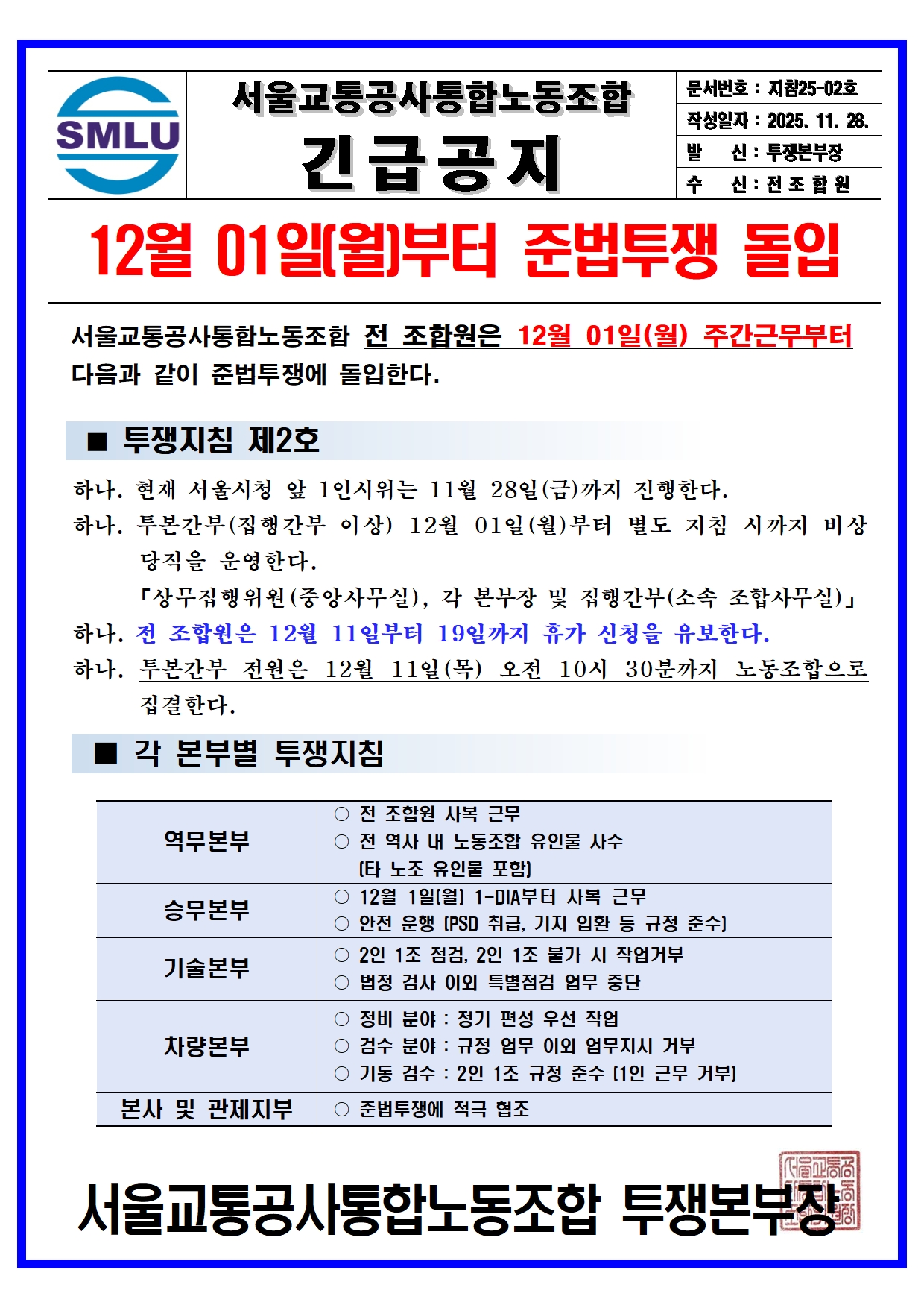 [긴급공지] 12월 1일부터 준법투쟁 돌입