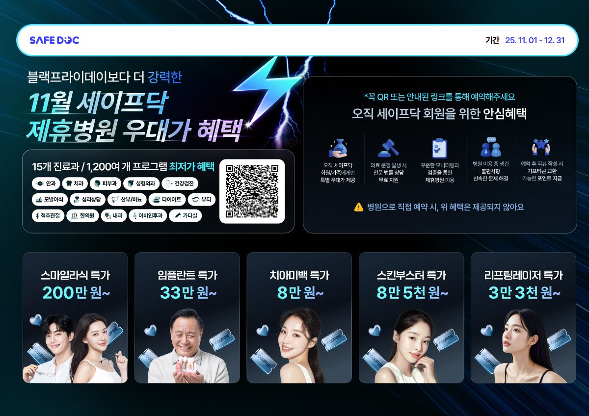 전국 500여개 병의원 비급여 의료비 진료과별 최대 49% 할인혜택(15개 진료과, 1,200여개 프로그램)