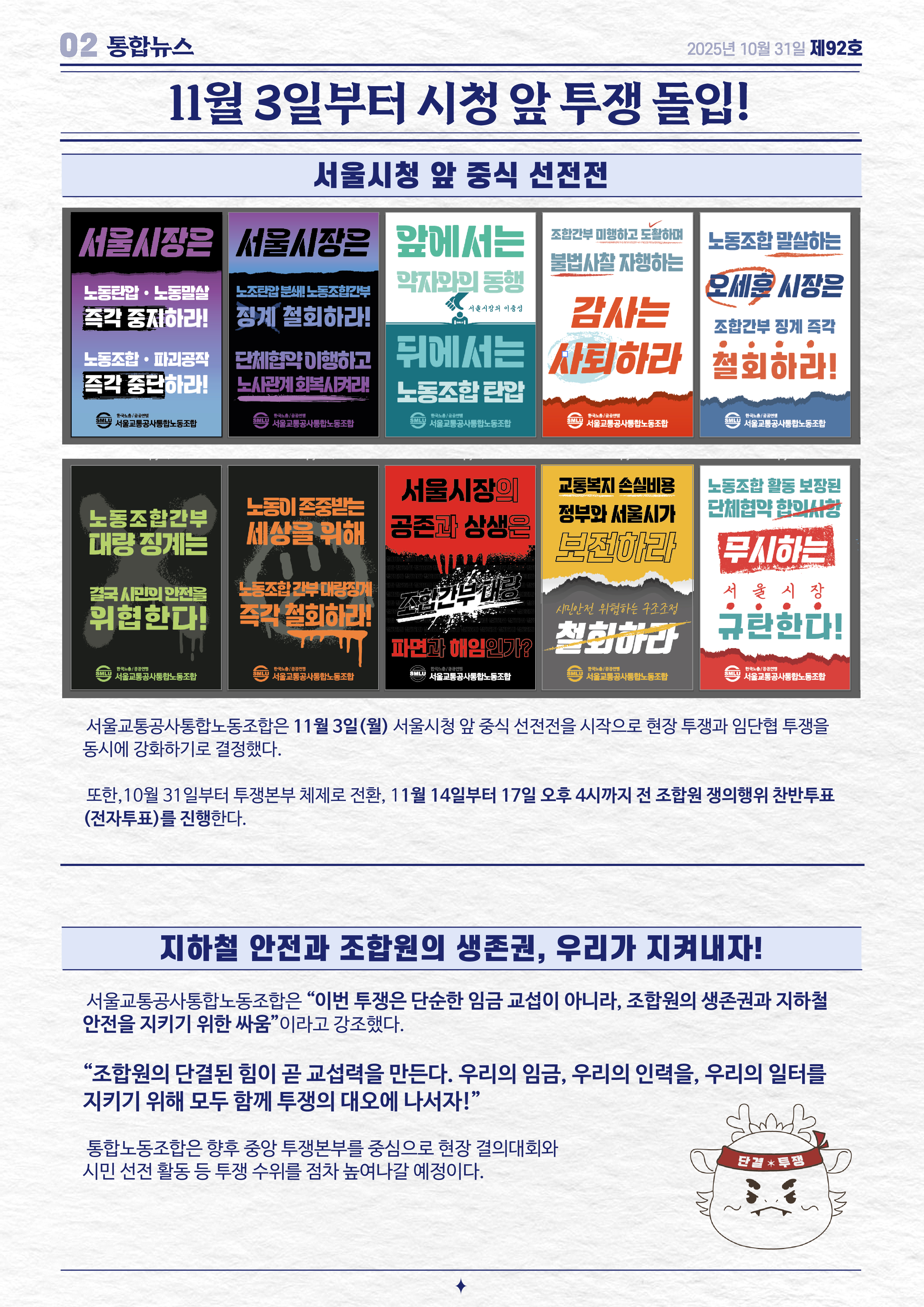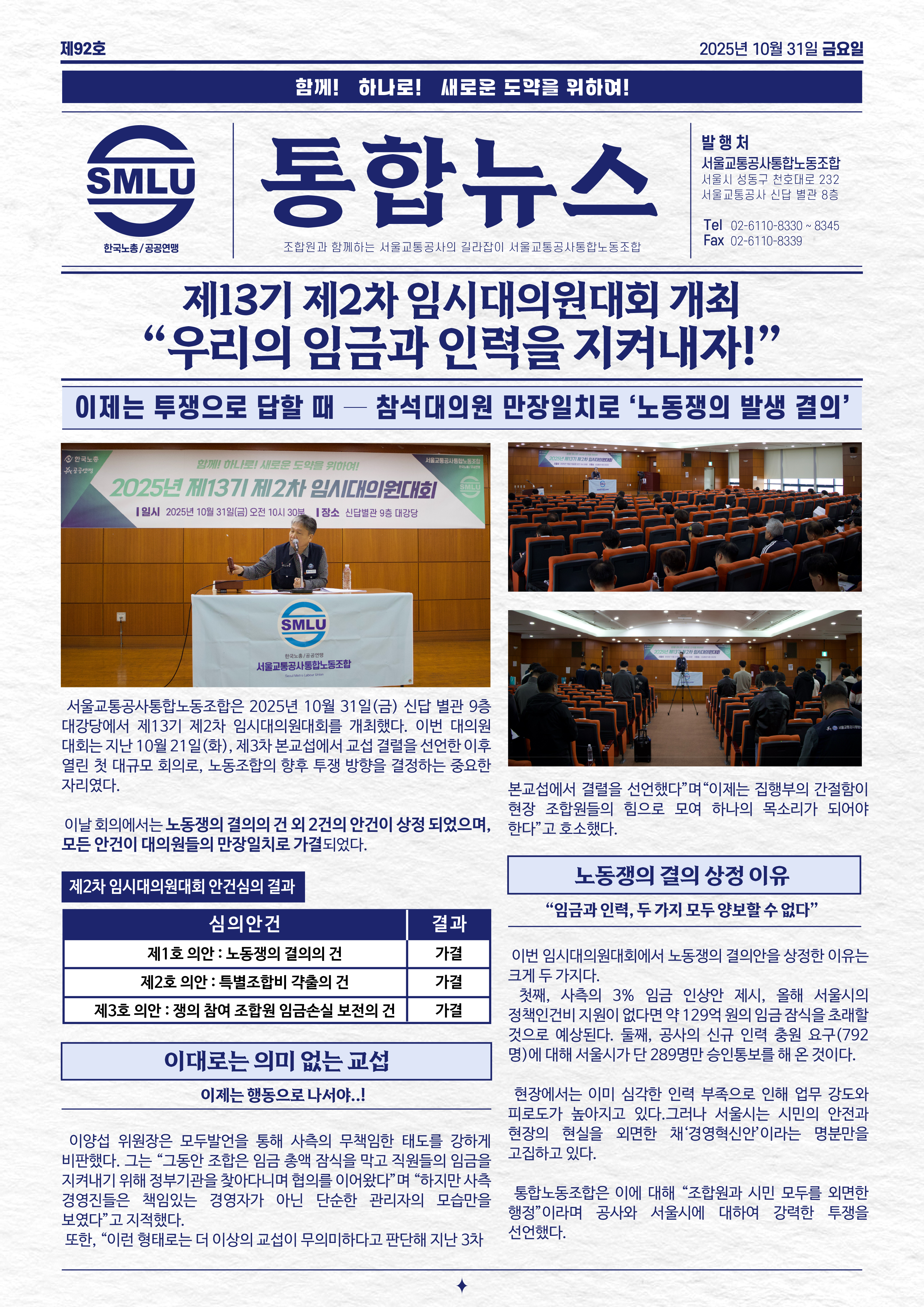 [통합뉴스 제91호] 2025년 임금교섭 결렬!