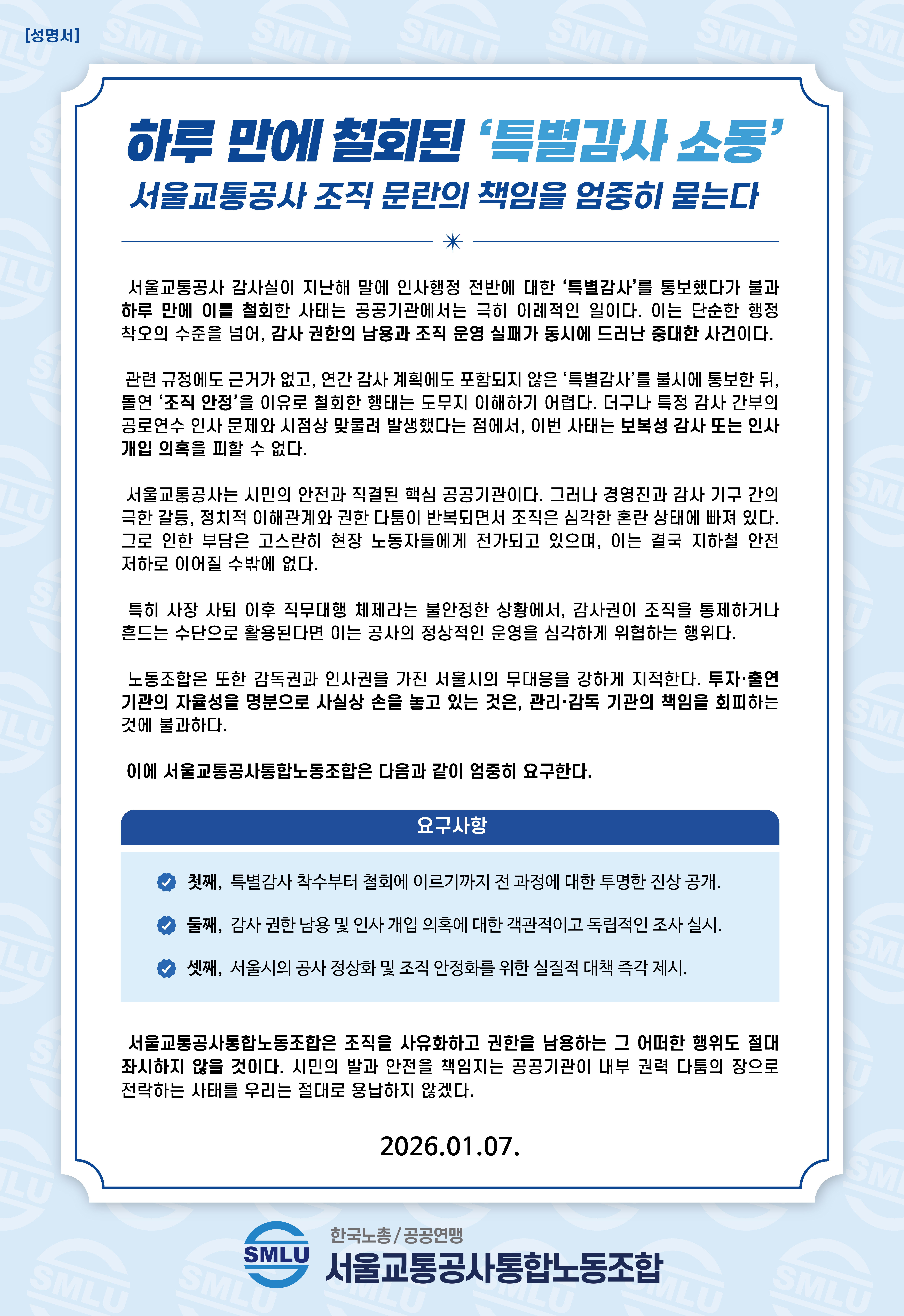 [성명서] 서울시는 서울교통공사 사용자로 나…