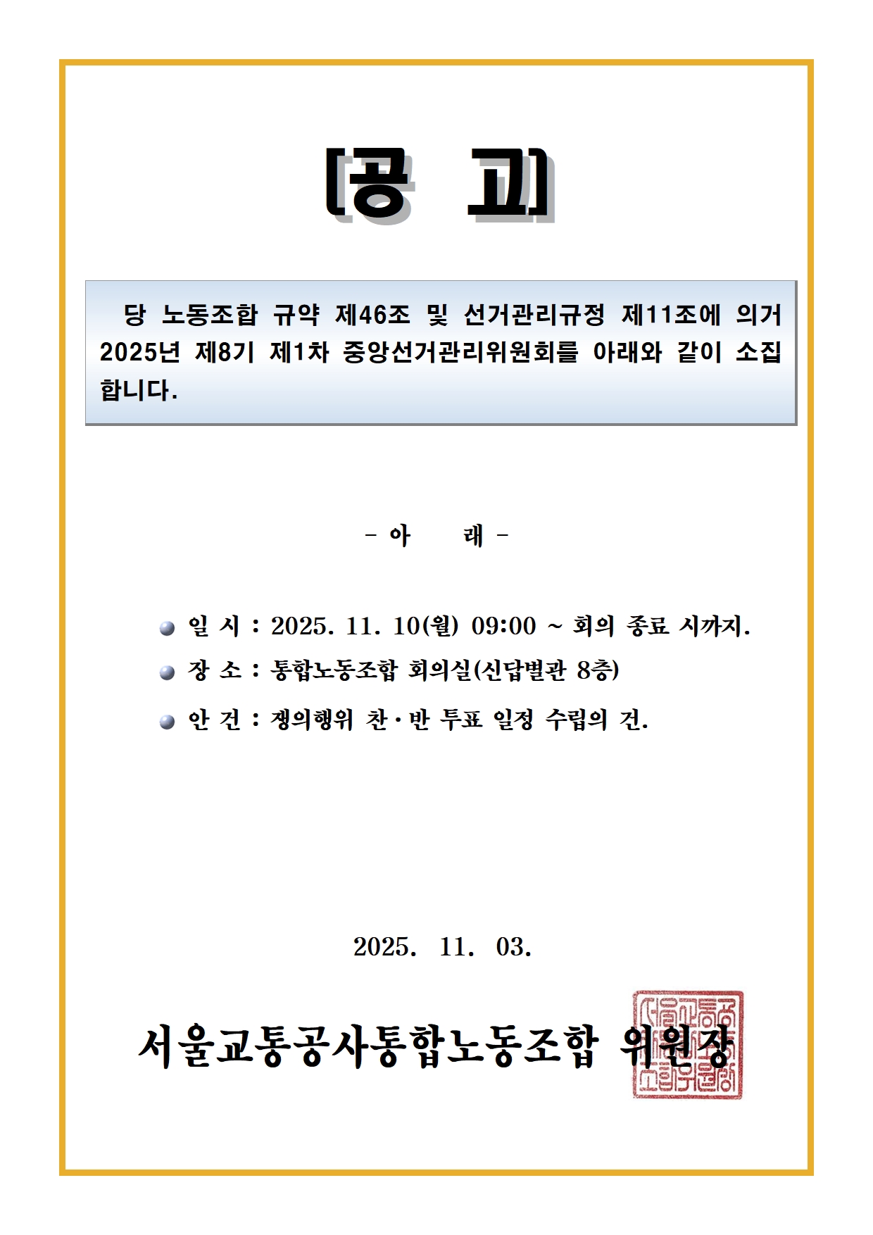 [공 고] 2025년 제8기 제1차 중앙선거관리위원회 소집