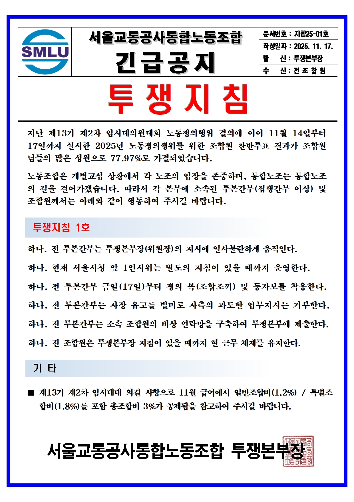 [긴급공지] 2025년 노동쟁의행위 투쟁 지침