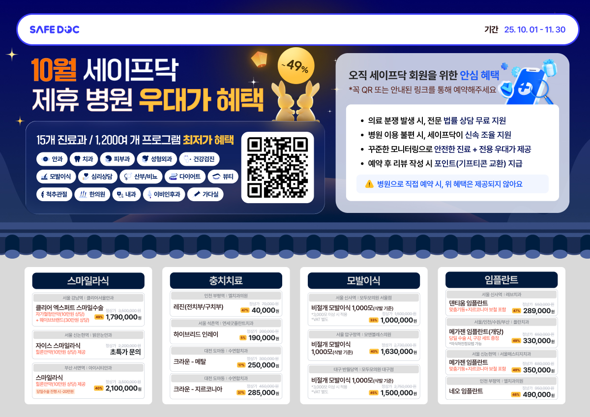[병원우대]9월 서울교통공사통합노동조합 전국 500개 병원/ 1,200개 상품 할인혜택 안내(안과,치과,피부과,성형,모발이식,건강검진,심리상담 등)
