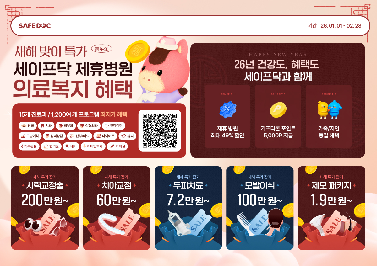 전국 500여개 병의원 비급여 의료비 진료과별 최대 49% 할인혜택(15개 진료과, 1,200여개 프로그램)