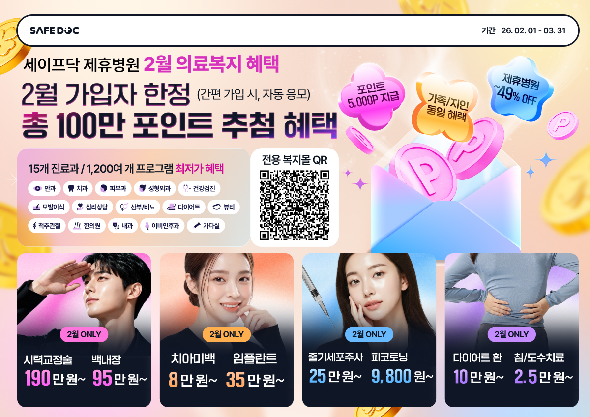 [병원우대]2월 서울교통공사통합노동조합 전국 500개 병원/ 1,200개 상품 할인혜택 안내(안과,치과,피부과,성형,모발이식,건강검진,심리상담 등)