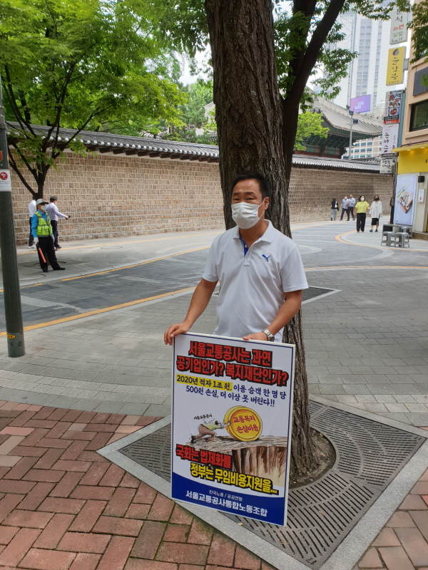 노동조합은 2021년 7월 13일(화) 『서울교통공사 재정위기를 직원에게 전가하지 말고 근본적인 문제 해결』을 촉구하는 1인시위를 서울시 의원회관 앞에서 실시했습니다. 지지해주신 시민분들께 감사드립니다.