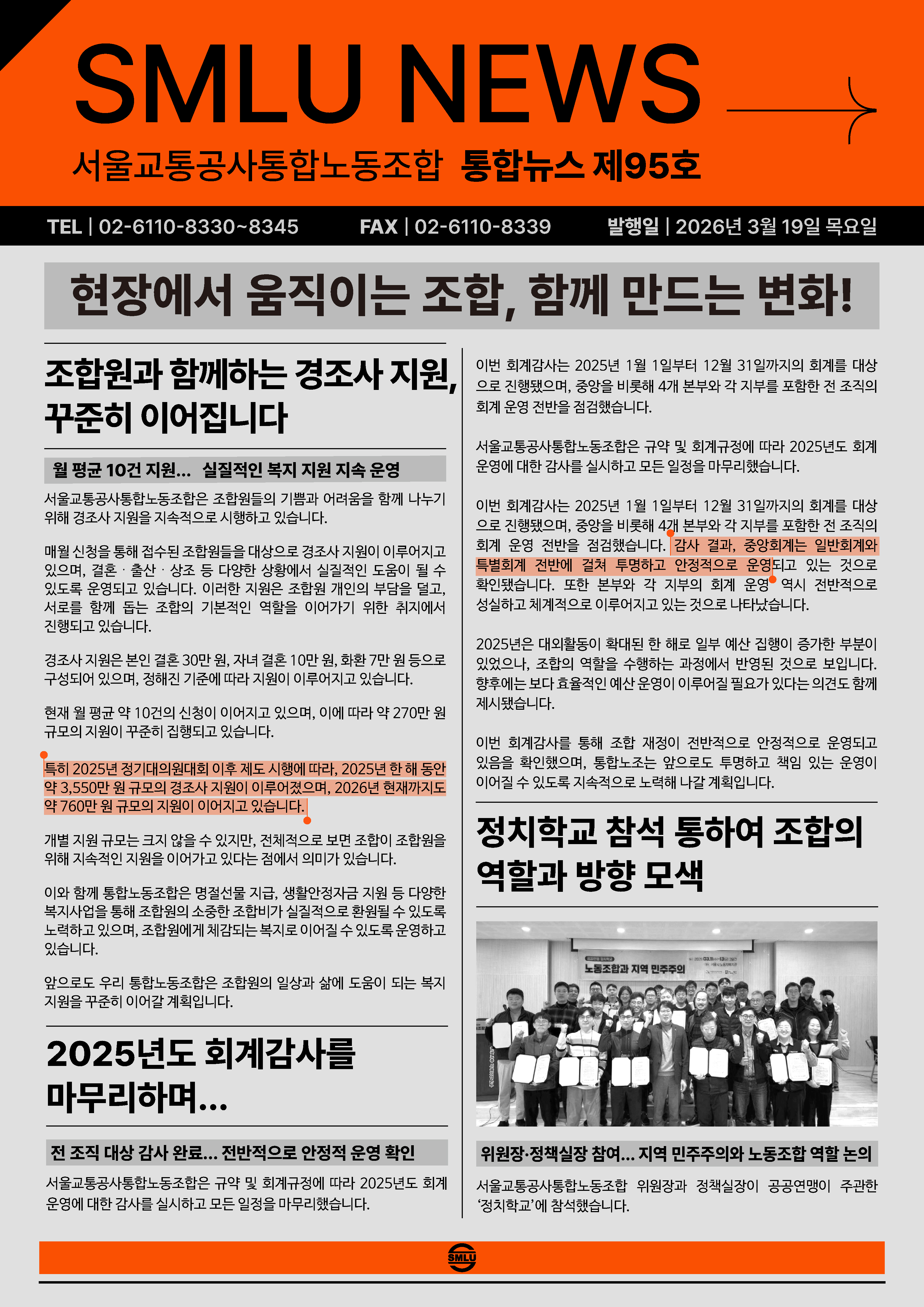 [통합뉴스 제95호] 현장에서 움직이는 조합, 함께 만드는 변화!