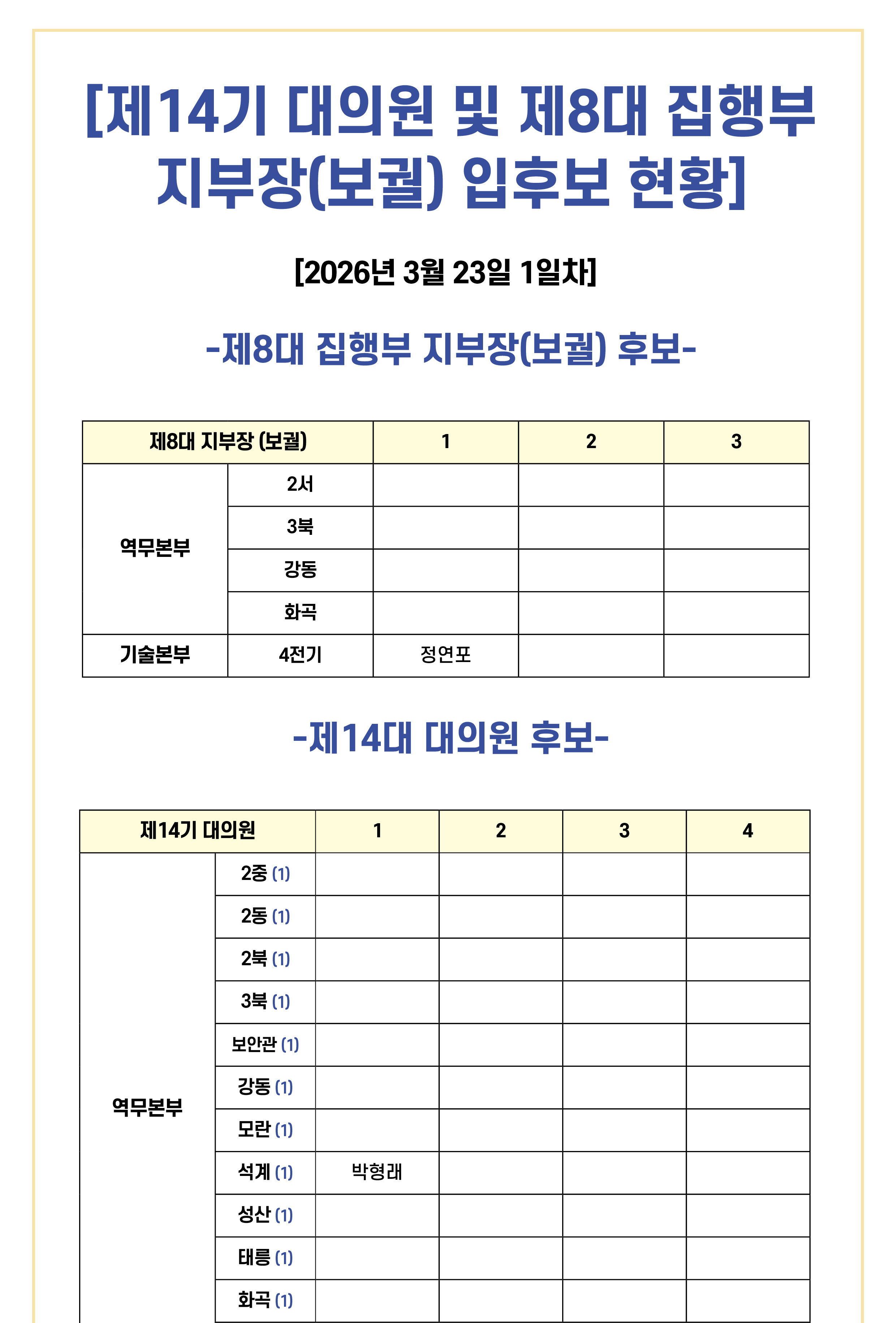 [공 지] 제14기 대의원 및 제8대 집행부 지부장(보궐) 입후보 현황